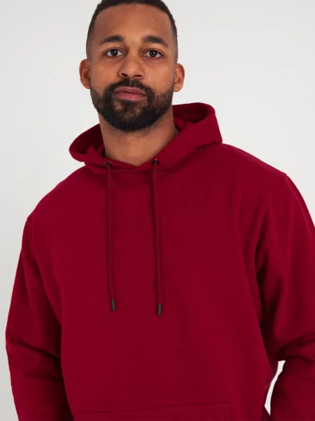 Classic Pullover Hoodie This style features a simple, solid-colored pullover hoodie with a spacious kangaroo pocket. It may have a drawstring-adjustable hood and ribbed cuffs and hem for a snug fit.
