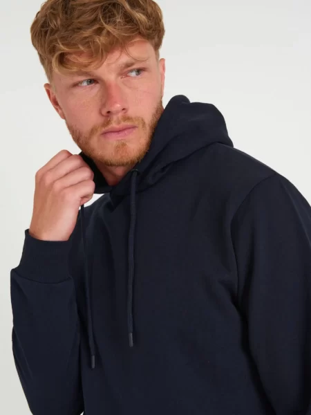Classic Pullover Hoodie This style features a simple, solid-colored pullover hoodie with a spacious kangaroo pocket. It may have a drawstring-adjustable hood and ribbed cuffs and hem for a snug fit.